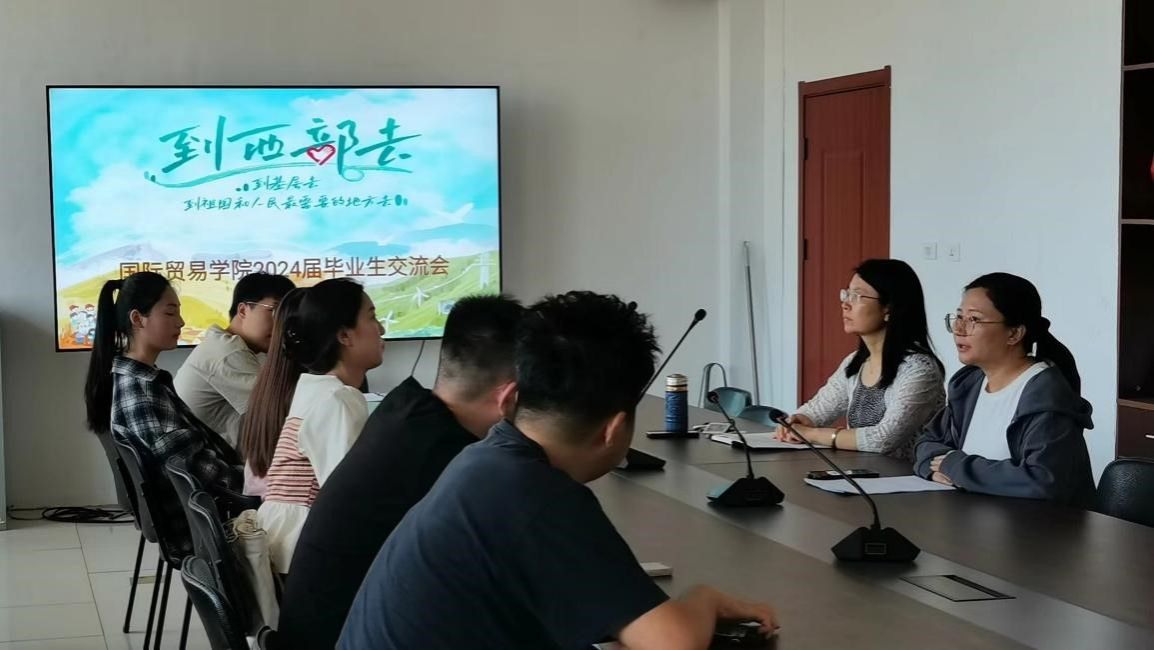 志愿投身在西部,奉献开拓献青春。交流会中,2019级贸易经济1班李升同学做了服务西部计划的视频分享,从工作内容、薪资待遇、未来发展等方面为参会同学介绍了自己参加西部计划的经历。辅导员从自身经历出发,介绍西部计划对未来考公、考研以及就业的意义,引导同学们拓宽就业渠道。2020级贸易经济1班李祥宇同学通过分享自己的求职经历,从招聘APP的选择到面试技巧的讲述,为想要找工作的同学传授了自己的就业经验。
