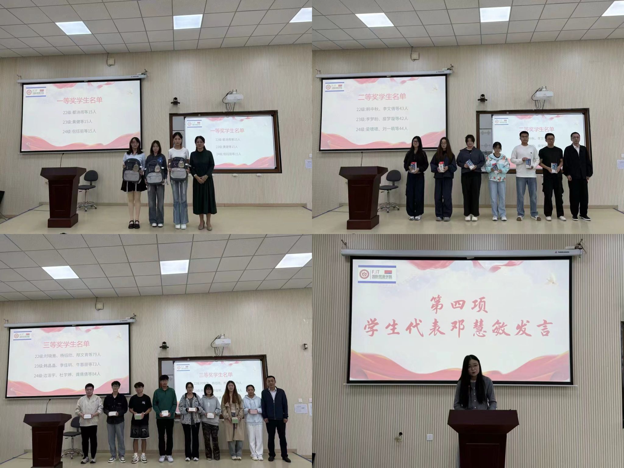 学院领导对所有获奖学生表示热烈的祝贺,肯定了他们的实践成果,并为获得一等奖、二等奖及三等奖的学生代表颁发奖品,鼓励大家继续保持这份热情与努力,在未来的道路上再创佳绩。