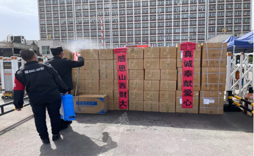 田祥宇校长与学院领导向高福忠先生表达了诚挚的感谢。学校疫情防控专班综合协调组组长赵学文协调了有关事宜。在对捐献物资进行全面消杀后,学院领导、辅导员及有关部门共同接收了防疫物资,并再次向家长表示了感谢。