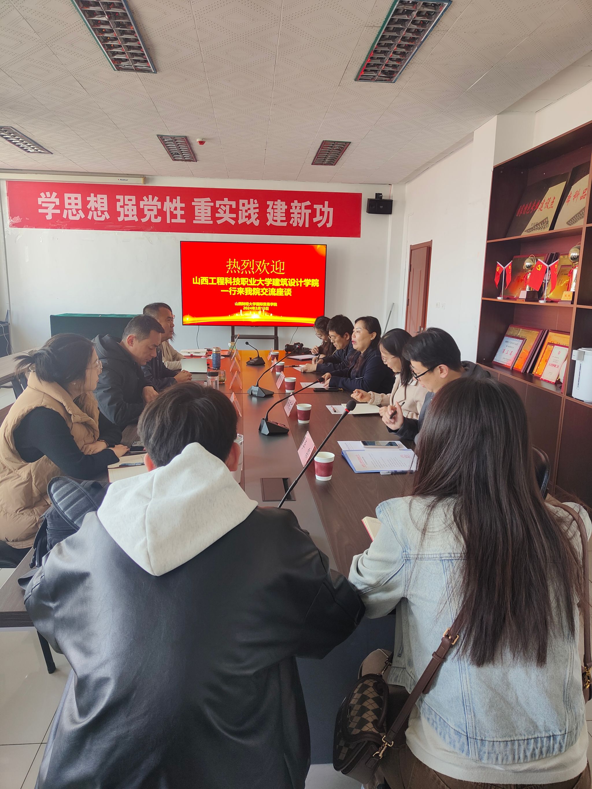 陈晓虎书记代表学院对山西工程科技职业大学建筑设计学院一行的到来表示热烈欢迎,并详细介绍了山西财经大学的发展历程、办学特色、人才培养等情况以及韩国无码 党建思政、辅导员队伍建设等情况。副书记殷丽娟、副院长刘军分别就学生管理工作及学院教学工作进行了重点介绍。