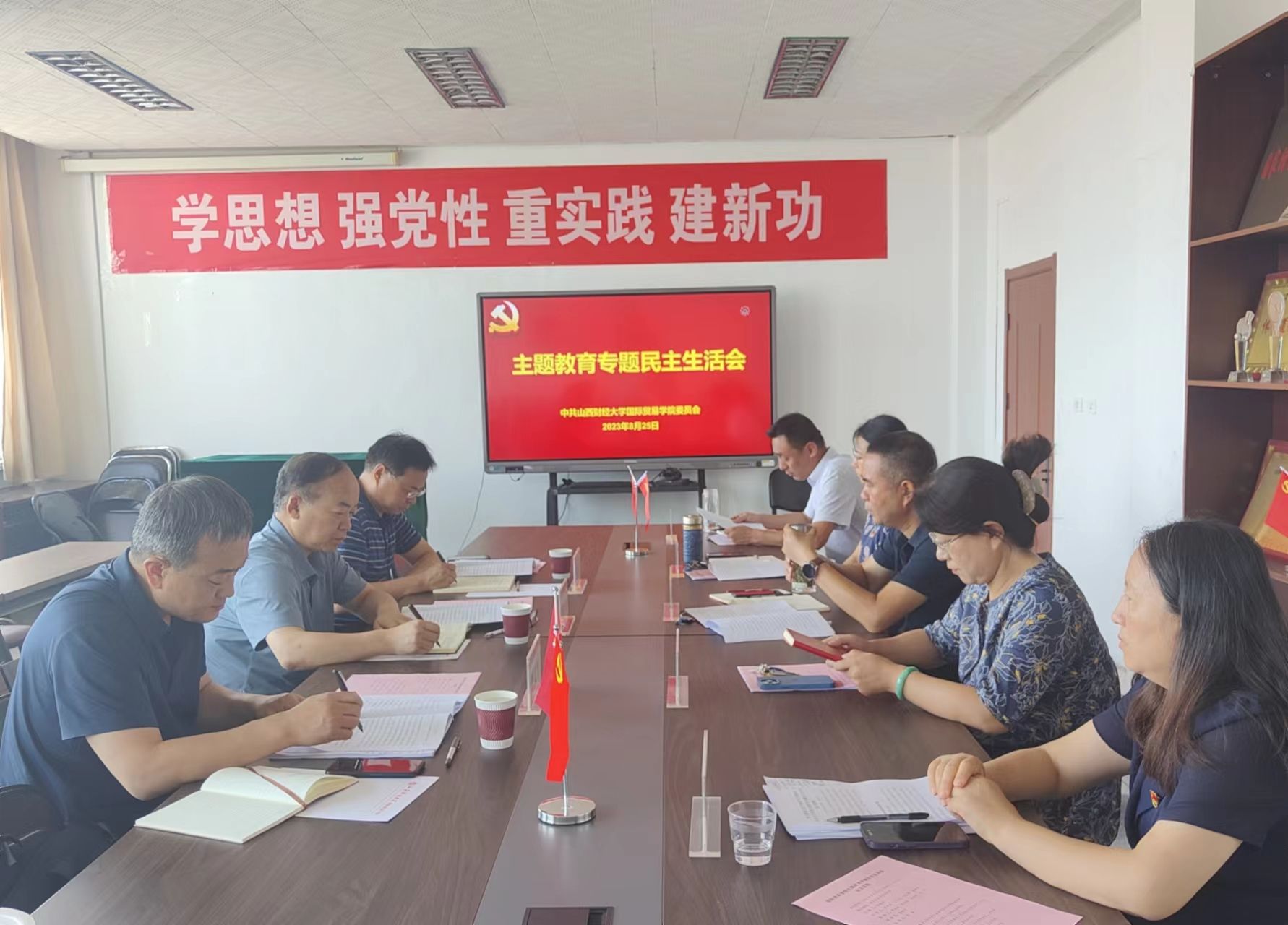 召开学习贯彻习近平新时代中国特色社会主义思想主题教育专题民主生活会。党委常委、副校长沈沛龙出席会议,学校主题教育督导二组王玉宝、刘文军到会督查指导。会议由学院党委书记陈晓虎主持,全体处级党员领导干部参加,院长郭建宇作为党外同志列席会议。