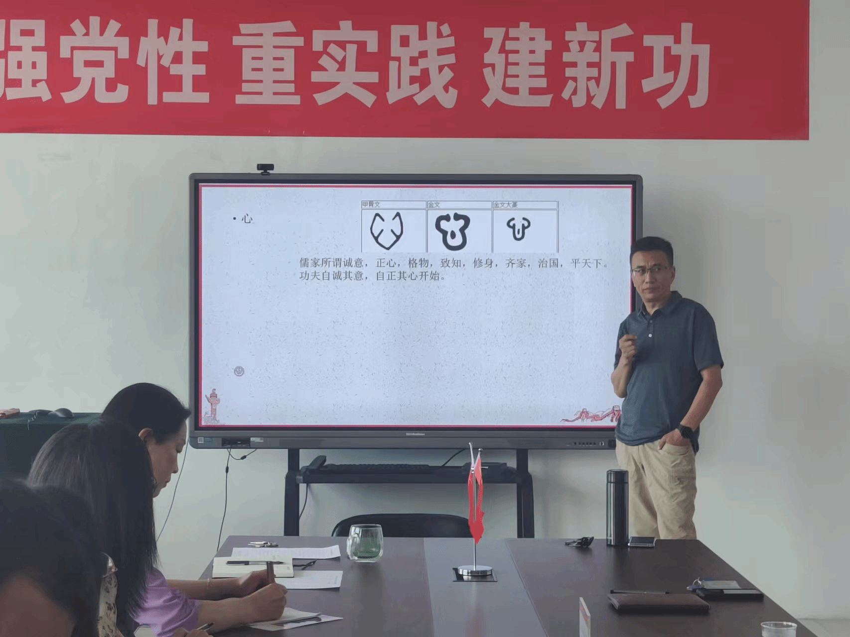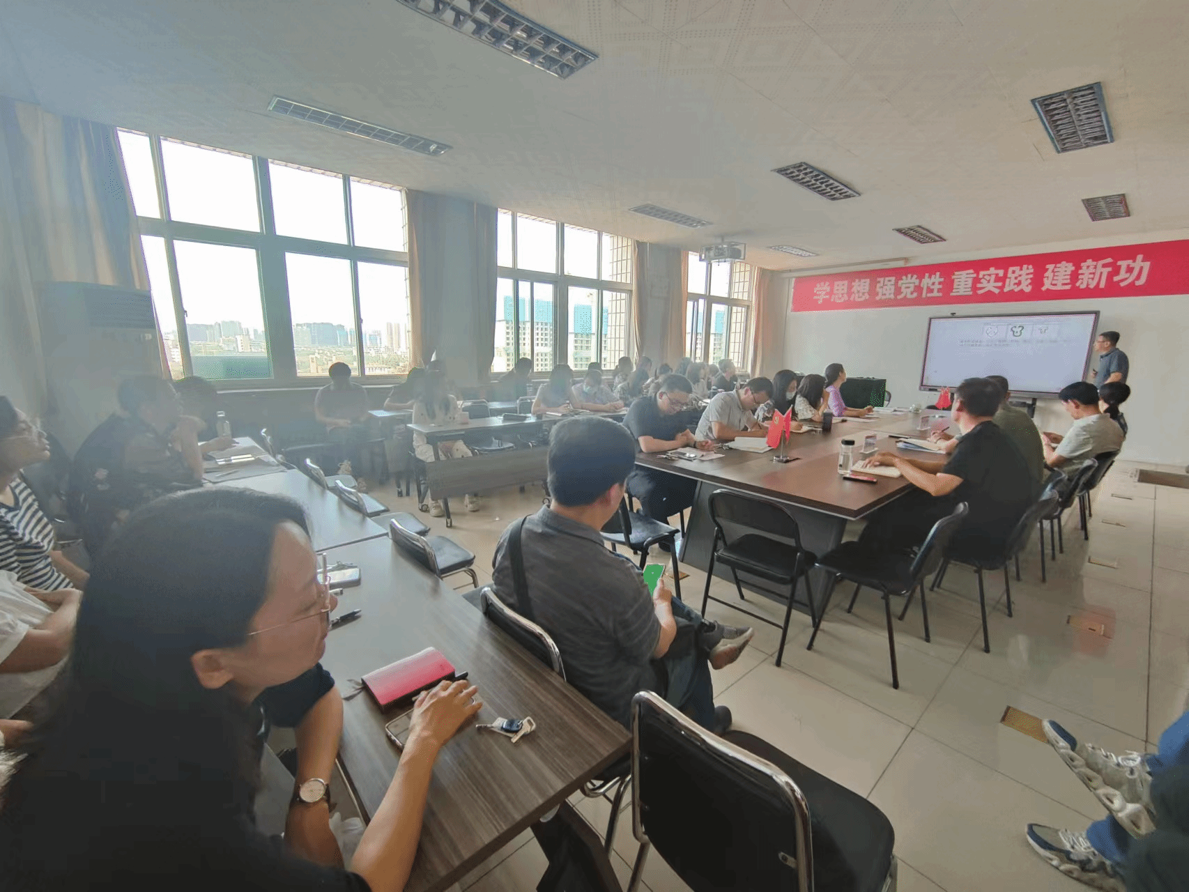 王老师用宽拓的视野、翔实的事例、生动的语言,从“什么是初心和使命”、“《共产党宣言》的历史背景、主要内容和理论实践意义”及“共产党人如何践行初心和使命”三个方面层层递进、深入浅出、全面细致地解读了《共产党宣言》的历史渊源和内涵本质,并强调了重温《共产党宣言》在中国式现代化发展进程中的现实指导意义,给全体教职工上了一场精彩的思政课。